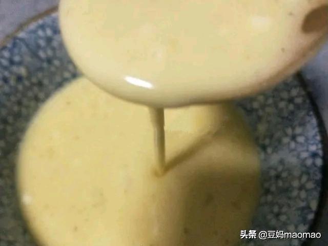 2、鸡蛋1个。加入等量的清水。再少量多次加入面粉。约15克左右。加入少许盐。五香粉调味。搅拌均匀至无颗粒。像我们平时喝的酸奶状就可以。