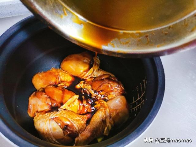 4、将抓匀的鸡翅放入锅里。再倒入刚才按摩的全部汤汁。注意:不加水。不用油。