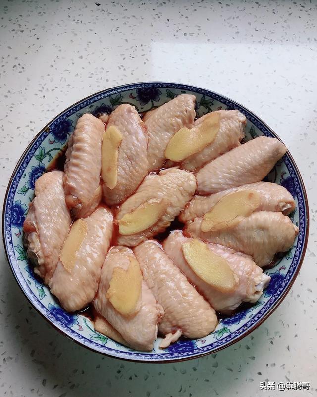 1.首先准备鸡翅12个。可乐一瓶。把鸡翅放入水中浸泡一会去好掉血水。然后再把鸡翅捞出沥干水分。把鸡翅背面划上花刀。然后加入料酒。生姜。蚝油。生抽(或者糖色。糖色做出了的鸡翅糖色比较洪亮)和少量一点食盐。一起搅拌均匀腌制20分钟好入味。