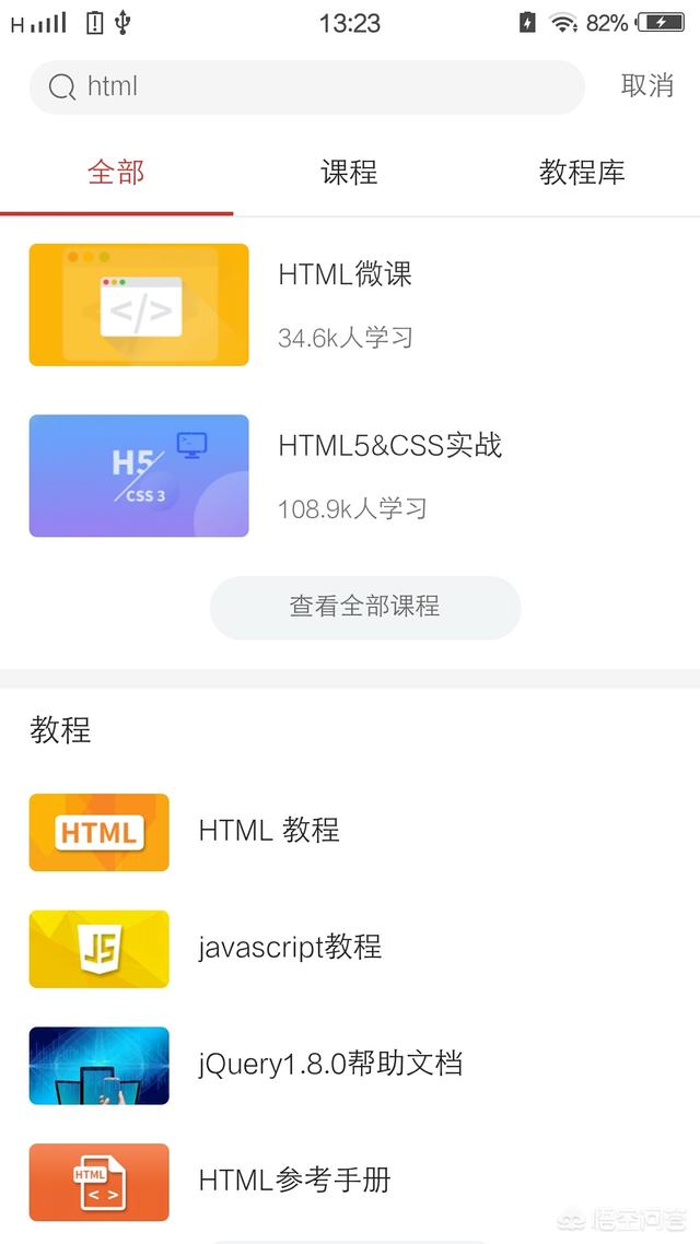 html:这个直接在搜索框中搜索就行。很快就能找到对应的学习资料。如下: