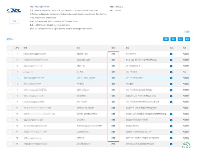 除了找到对口的目标客户。点击客户画像功能。还能帮你直接找到老板、采购、高管等关键决策人联系方式。