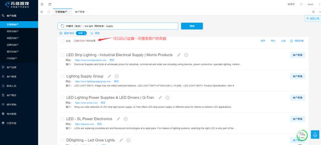 以LED灯为例。输入产品的英文关键词。选择想要开发的国家。一键搜索。对口客户立即获取。