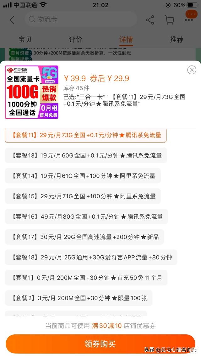 以我自己为例。我买的是重庆联通的流邦卡。一个月29.8元。包含300分钟通话时长和42G流量。因为还可以申请头条之类的免流服务。所以一个月最多可以免费使用80G流量。基本上一个月的流量使用是完全没有问题的。