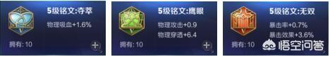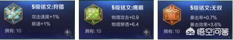 推荐第二套铭文《蓝色铭文使用狩猎前期续航较差。但是10%移速、攻速。非常舒服。》