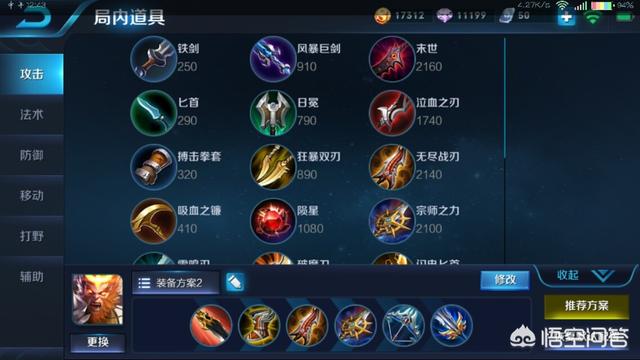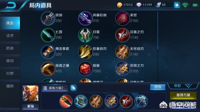 肉打野刀在前期能够保证猴子打野不伤。没有吸血铭文的情况下。猴子还是比较脆的。攻速鞋能够提升30%的攻速。能够很好的弥补技能间的输出。无尽战刃能够提高猴子暴击率和暴击伤害。是猴子最核心的输出装备。