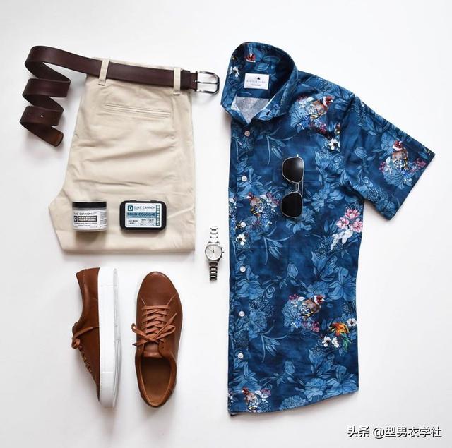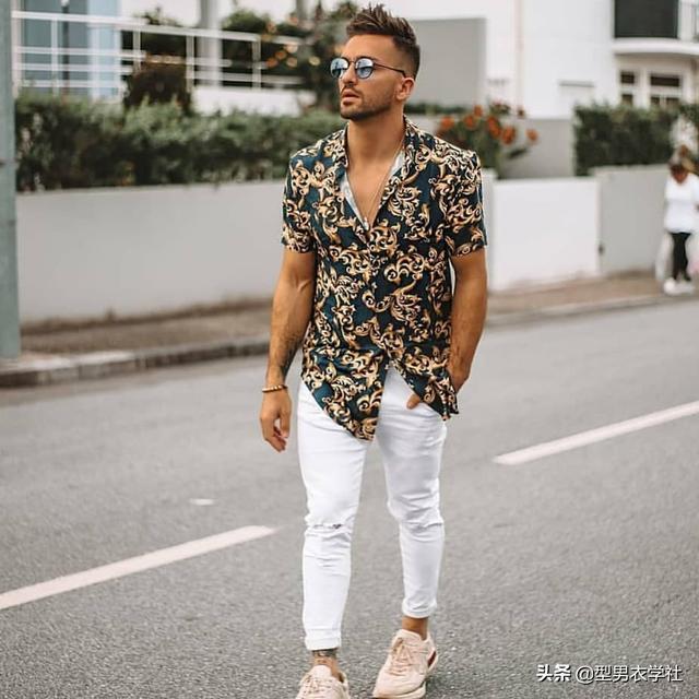 夏威夷衬衫搭配白色的休闲裤。夏威夷衬衫的选择没有错。但是裤子看起来则很不协调。毕竟白色裤子不是每个人都能够很好的驾驭。尤其对于腿不直或者是腿粗、偏短的腿型来说。更为致命。更容易暴露出你的不完美腿型