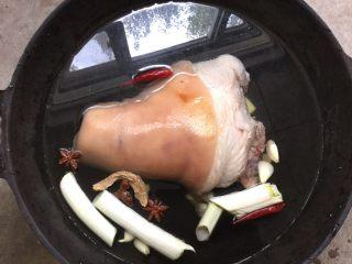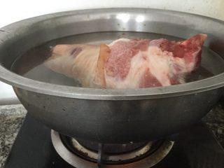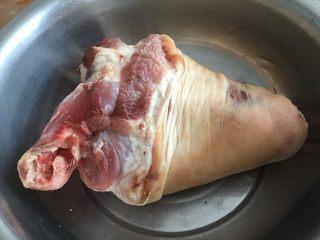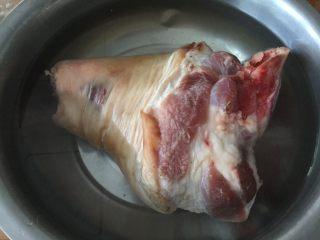 1:肘子提前一晚上用清水浸泡。将里面的血水和杂质泡出来;
