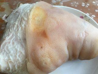 5.煮一下的肘子毛很明显。在用打火机烧一下就撤底没毛了。