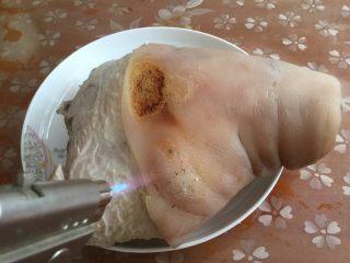 1.猪肘子先用煤气燥烧一下毛在洗干净。