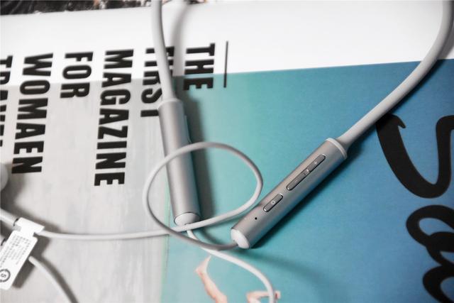 挂脖式蓝牙耳机与真无线蓝牙耳机最大的不同就要数这根颈带了。由于使用时长时间与皮肤接触。材质选择上就需要一定考究。这款耳机采用钛合金记忆金属线缆。除去出色的柔韧性和耐用性外。表面附着的材质触感温润细腻。个人在长时间佩戴后夹杂着汗水也没有发痒等不舒适的感觉。