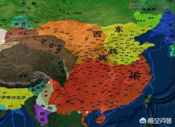 而这个地图。一看即知。是以西魏、东魏、南梁三国对峙的真实历史地图所改编的。