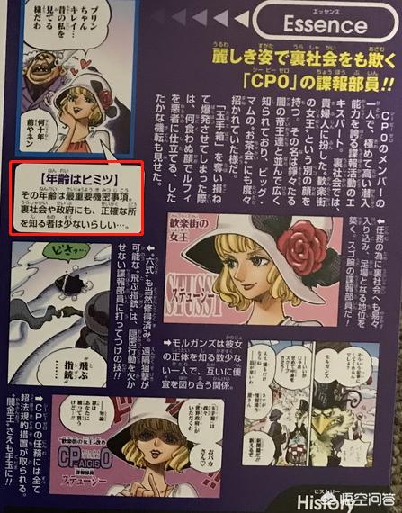 1、斯图西是第一个被尾田老师隐藏年龄的神秘女子。其身份绝对不是一个小小的CP0;(尾田老师典型的剧情套路)