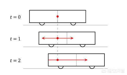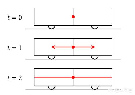 你站轨道旁边。一辆列车从轨道驶过。与你有相对运动。此时车厢正中央有一盏灯突然打开。灯光向车厢前和车厢后扩散出去。对于不同观测者来说。他们看到了不一样得事情。