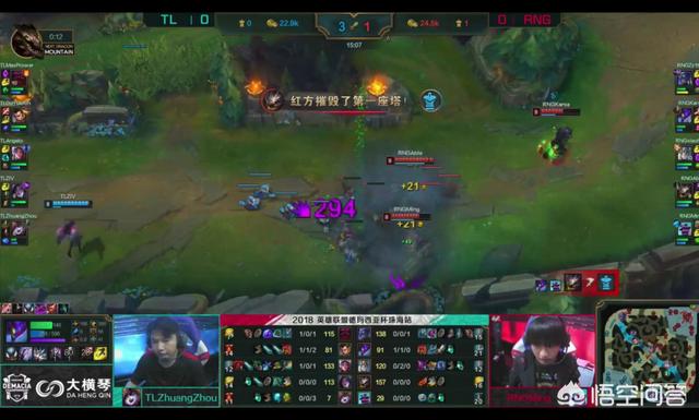 这场比赛uzi没有登场。而rng居然选择了完全的四保一阵容。上单慎。中单加里奥。辅助布隆。ad大嘴。前期平稳发育。rng不愧是冠军战队。找到机会秒大龙。但是被抢。陷入劣势。