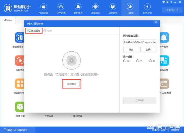 2、点击“添加图片”按钮或将需要转换的 HEIC 格式图片拖拽列表中后。点击立即转换;