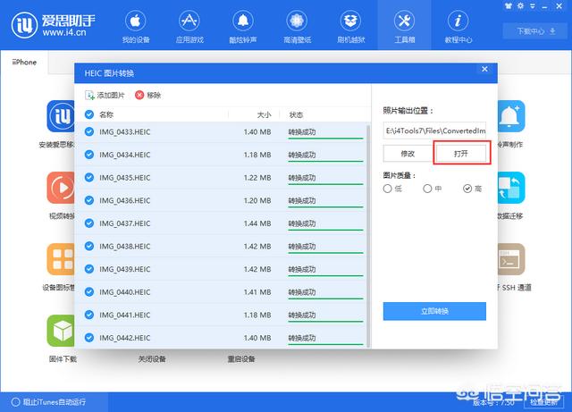 3、转换成功后。点击“打开”可查看转换成功的照片。