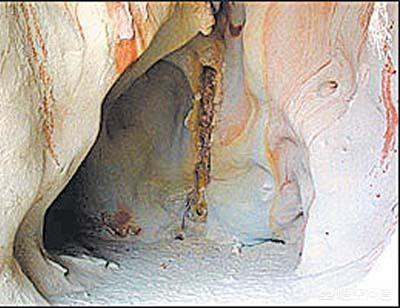 从质地和颜色上就可以看出来。这些铁管和周围的岩石是完全不同的组成。经过化验分析。这些铁管含有30%~80%不等的氧化铁。