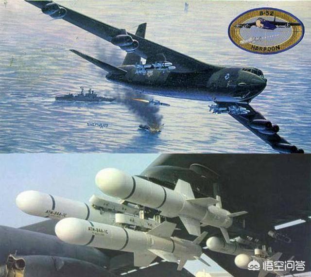 1982年。美国空军将30架B-52G轰炸机改装为可发射“鱼叉”反舰导弹的反舰轰炸机。这也是B-52轰炸机首次具备发射反舰导弹的能力。美国空军让每架B-52H轰炸机加挂12枚AGM-84鱼叉反舰导弹。一个中队的B-52H轰炸机就能齐射一百多枚鱼叉反舰导弹。