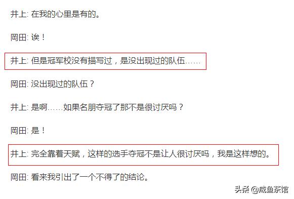 另外。井上雄彦在接受采访时候明确过。名朋工业不是冠军。真正的冠军是一只没有出场过的队伍。