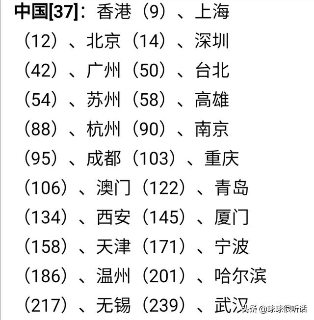 这份榜单中南部城市包括香港。深圳。广州。台北。高雄。澳门与厦门。