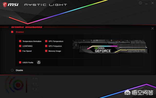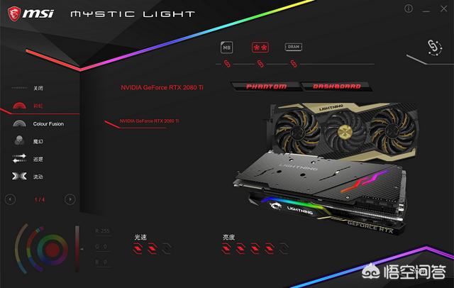 其实趁着之前推出Z390主板的时机微星就已经重塑旗下Mystic Light软件。让它可以更好的同步主板、内存、显卡、机箱这些外围配件。并且提供更多灯效。让整体灯光效果可以更加易用、好用。配合自GTX 1080 Ti逐渐上市后逐渐流行的屏幕。这就组合出很多新的玩法。没错。现在你可以通过Mystic Light来控制微星RTX 2080 Ti Lightning Z的动态显示屏幕。在软件当中选择Dashboard即可。另外说多说一句的就是。微星不止一次的强调过。因为精简体验的原因。以后会将大部分功能都集中在Dragon Center软件当中。以后理想的效果是用户需要后者即可控制灯效。但是就现在的Dragon Center(V1.0.30)。还没有看到控制灯光的接口。还是需要Mystic Light。