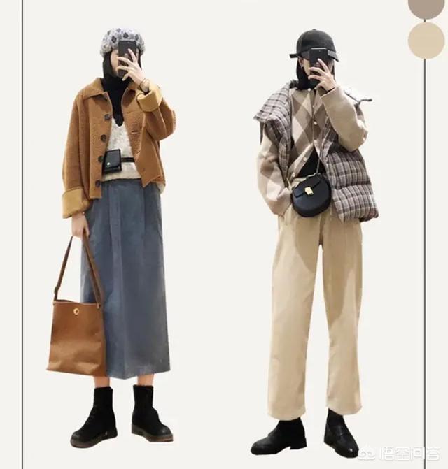 说起来。大地色搭配。除了选品上追求时尚新颖感之外。我们还可以通过小心机的搭配技巧。来增加造型的看点。就是很日常的大地色单品。也能穿出潮流范。就比如这组look。左侧白咖色的格纹大衣。本身就足够时髦。怎么穿都很好看。而右侧纯色外套看上去要逊色一些。但是打底衫+马甲的学院风叠穿。文艺又减龄。瞬间拉高了整个造型的颜值。