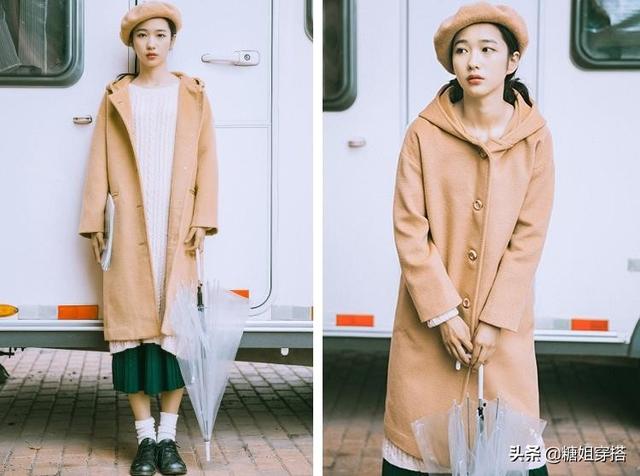 大地色有着天然的复古感。因此搭配方向我们可以选择复古风路线。而今天种草的这组look。大衣+半身裙的穿法。轻松穿出优雅又温柔的look。当然细节处。通过复古减龄的大地色渔夫帽、邮差包等饰品点缀。上身更添文艺复古感。