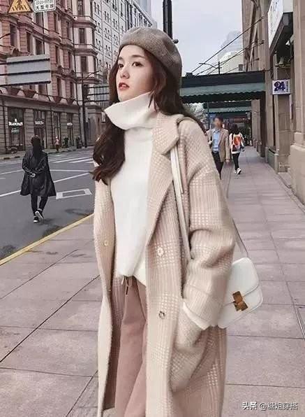 冬天穿一抹清新的米白色系。给人清新淡雅的感觉。气质十足而且非常有高级感。