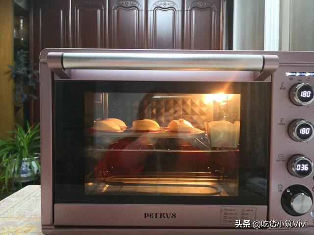 11.把烤盘放入烤箱中层上下火。180度。烤40分钟。每家烤箱温度不同。具体温度看各人家烤箱决定。
