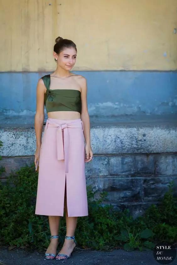 更高杆一点的。大面积的绿色点缀红条纹或是红腰带。特别有趣特别美:
