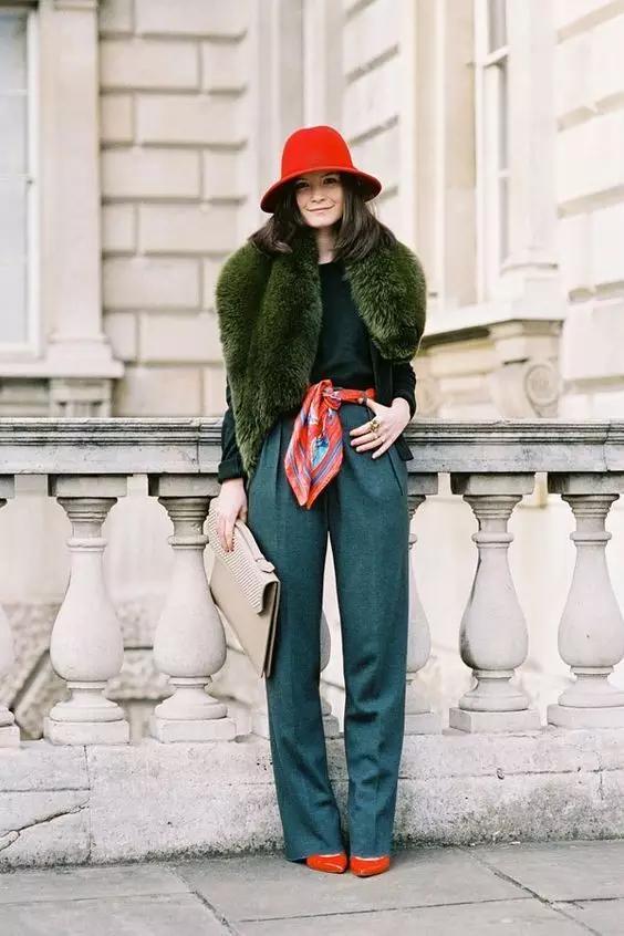 今天就跟大家分享几点。让红配绿变时髦的小心机: