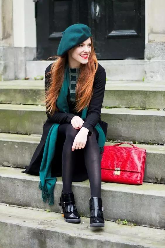 2、红绿补色搭配。再添加任意的无彩色。比如红衣绿裤添加黑色外套或白色的打底衫。这样它们就和谐了。