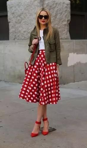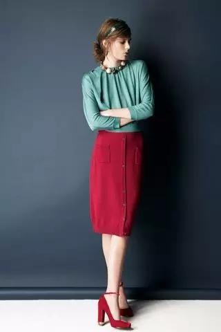 在红绿配时。你不一定非得1:1地穿(例如上身穿红下身穿绿)。不妨试试在大面积红色中点缀绿色。会让整体搭配更清新。