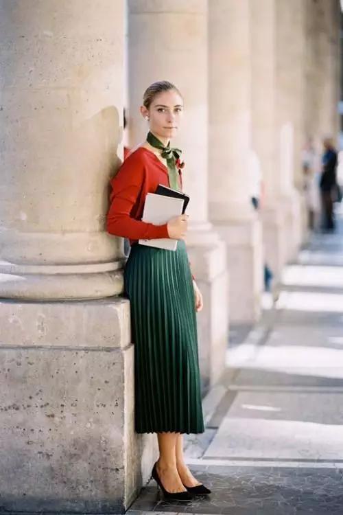 关于红配绿怎么搭配才好看?我有专门写过文章《你说“红配绿土气”。她却将红绿配穿出了高雅的艺术美》(点点关注我。就能看到)。