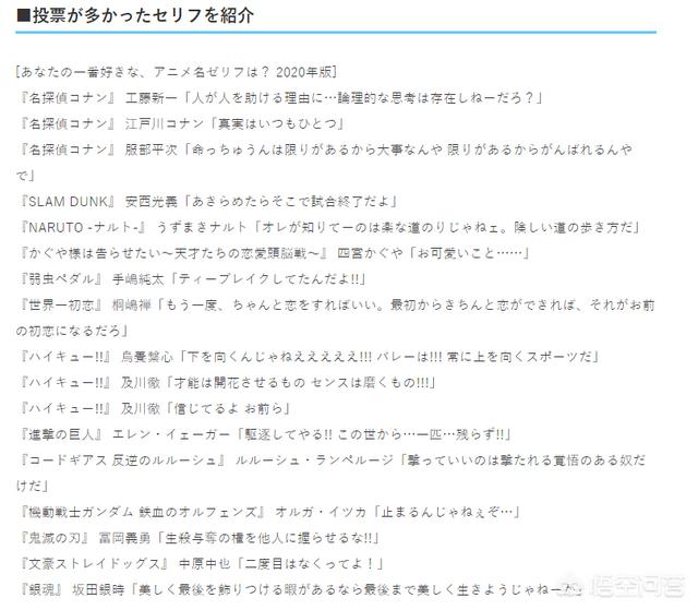 近日。日媒アニメ!アニメ!针对“网友们最喜欢的动漫名台词是?”展开读者调查问卷。这次的结果跟上次的“告白之日”一样。不采用排行的方式来公布。让我们来看看都有哪些台词。