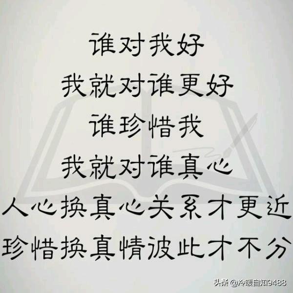 老老实实做人。踏踏实实做事。不狡诈。不虚伪。以诚待人。将心比心。你敬我一尺。我还你一丈。人活着没必要去讨好任何人。没必要刻意为难自己去看别人的脸色。人心都是相互的。感情都是相向的。你对我好。我对你更好。你对我不好。我又何必讨你的欢心?人心换人心。你真我也真。深情换深情。你假我转身!
