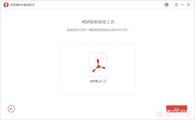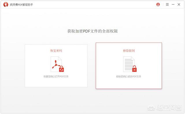 第1步:打开疯师傅PDF解密助手。选择主界面上的“移除限制”。
