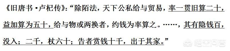如果是以物易物的交易。直接折算成钱征税。如果私自交易被税官发现。隐瞒一百钱就没收;隐瞒两千钱杖六十;举报的人赏钱十千。赏钱由隐瞒者出。