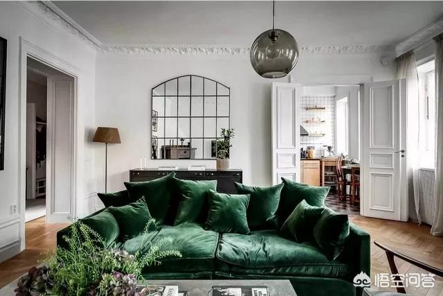 如果说复古深绿很难驾驭。那这种清浅一些的草绿就比较万能了。搭配各种原木、黑白家居。就能创造宁静又协调的观感 ▼