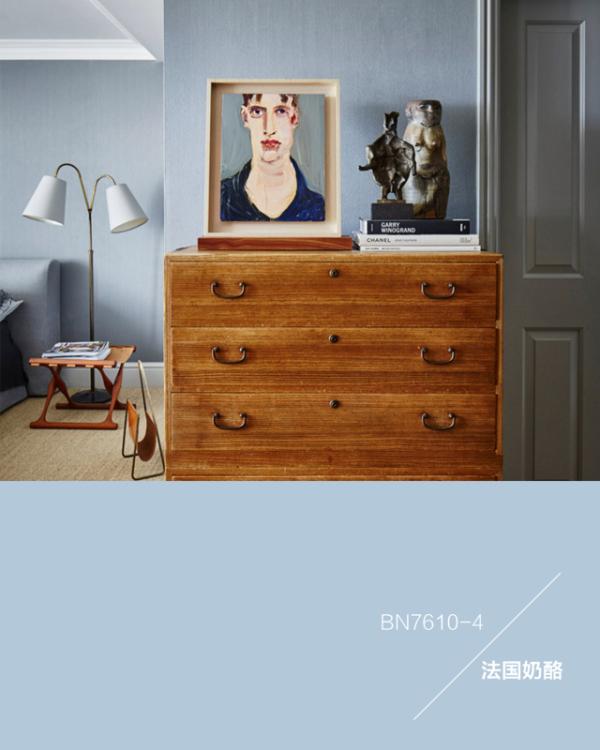 不管是法国奶酪、水洗蓝、复古蓝之类的名称。都只是一种叫法。每个油漆品牌的命名都会不一样。我们认清楚颜色就好。这个蓝不是那种明晃晃的小清新蓝。而是掺了一点灰。明度降下来。更加雅致和耐看。