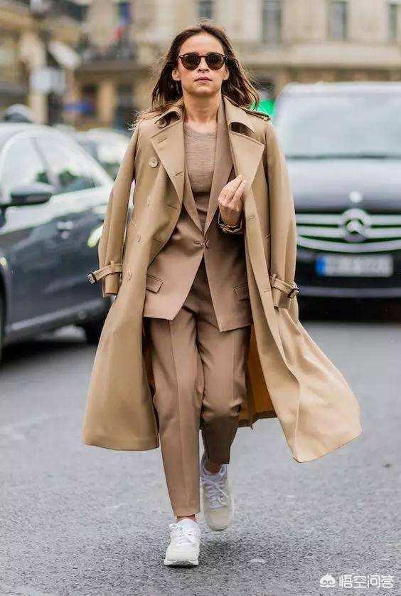 驼色搭配白色。简单易上手。对于肤色偏黄的女性而言这样的搭配能很好的提亮肤色。驼色的大衣内搭一身白。拿上公文包就可以美美的上班了。