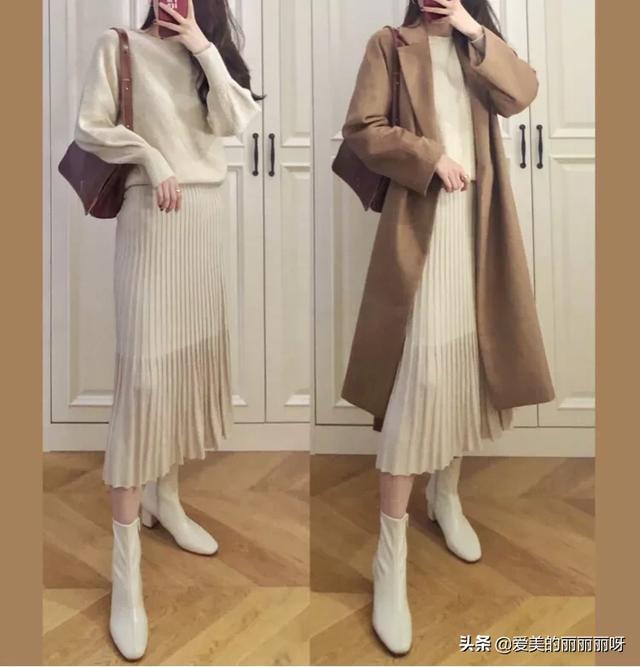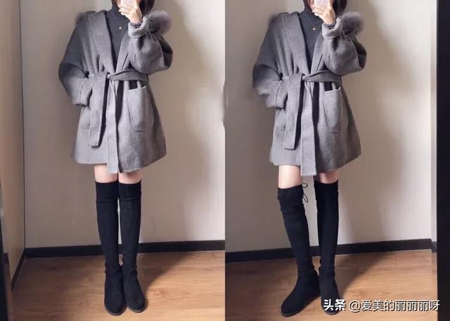 最后下面再穿双过膝靴。女人味满满。气质大方。