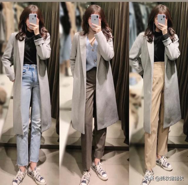 灰色大衣与锥子裤的完美结合。打造气场职业风