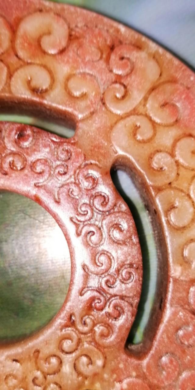 关于这个问题。笔者认为。“微痕”就是古玉加工过程中以及入土或者传世过程中产生的细微痕迹。或者说微观痕迹。包括一些打磨痕迹