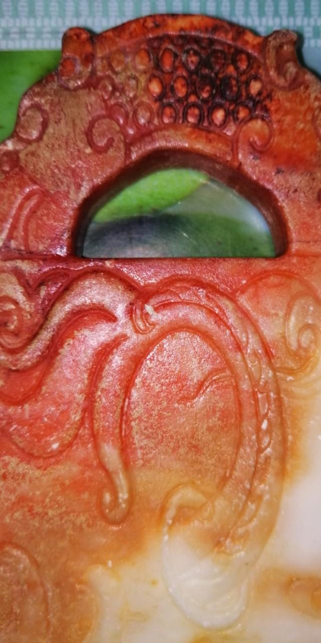 关于这个问题。笔者认为。“微痕”就是古玉加工过程中以及入土或者传世过程中产生的细微痕迹。或者说微观痕迹。包括一些打磨痕迹、抛光痕迹、解玉砂碾压痕迹、拉丝痕迹、玉质的质变和结晶体的产生、局部的钙化、形变、裂纹。以及土蚀、土咬、风化痕迹、阴线与玉表面的包浆对比。转角处的清理痕迹、打孔工艺、片切割痕迹、镂雕艺术神韵感等等。有时需要借助放大镜或者显微镜甚至红外光谱、拉曼光谱进行检测。综合其料、工、形、纹、沁、包浆来判断。才能得出一个较为准确的结论!