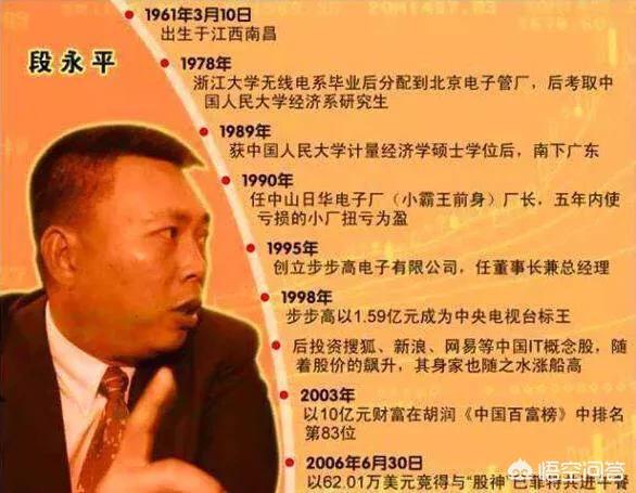 而传为佳话的是段永平投资丁磊的网易的故事。在2000年前后。网易股价低迷。濒临退市。段永平用200万美元。不到两年挣了100多倍。