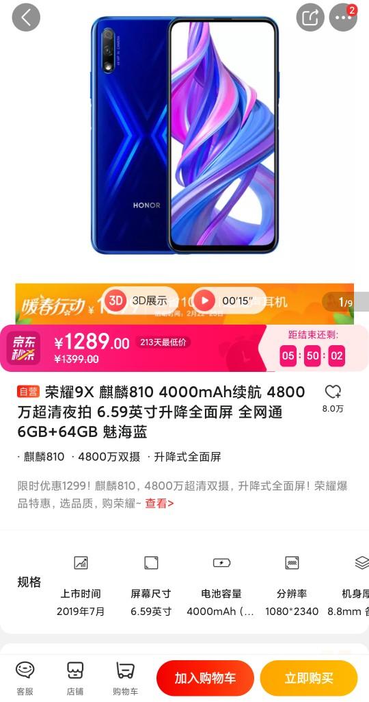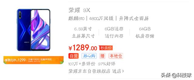 荣耀9X搭载了麒麟810处理器。目前6+64版本1289元。京东上评价已经超过100多万。预估最终销量能达到2000万。荣耀9X可以说是。目前这个价位性能最好的手机。毕竟是千元机。不能面面俱到。他的短板是充电(功率为10w)和屏幕。它是有随选朗读功能的。总体来说。这是一款极具性价比的手机。