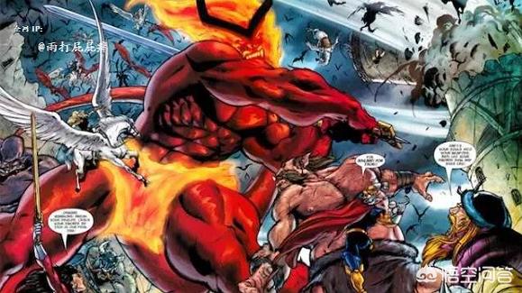 对于另外一边的苏尔特尔来说。就不一样了。一方面是因为自身本身就是诸神黄昏的关键执行者。有一定的预言属性加持。另外一方面自身。电影中的苏尔特尔在体型上具备绝对优势。而且因为永恒之火加持具备强悍恢复力。