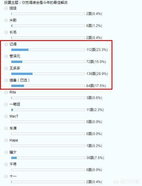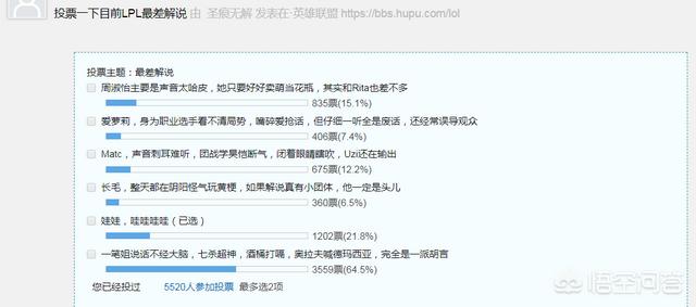其他观点:最佳解说王多多第一、cat第二最差解说投票第一一笔姐、第二娃娃娃娃居然是第二一直以来娃娃和米勒都是以搭档的