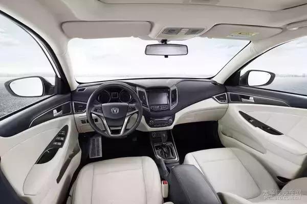 车内。提供新款双色座椅。包括黑/橙、黑/白多种搭配。在配置方面。新款CS35配有博世最新第九代ESP系统、胎压监测、升级版in Call智能车载互联系统。新增右侧盲区监测、副驾未系安全带提醒、自动泊车辅助系统等。